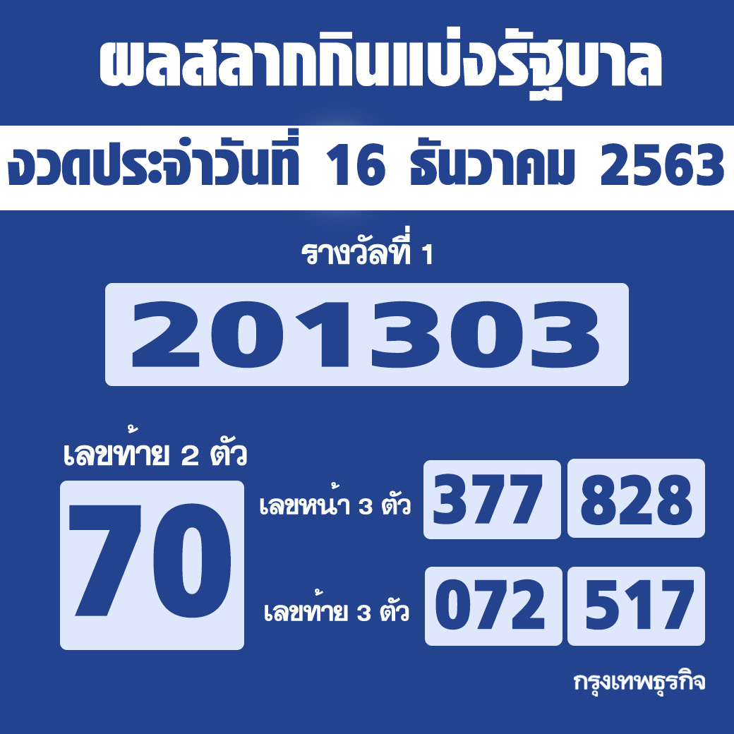 ตรวจหวย ผลสลากก นแบ งร ฐบาล งวดว นท 16 ธ นวาคม 2563 สด