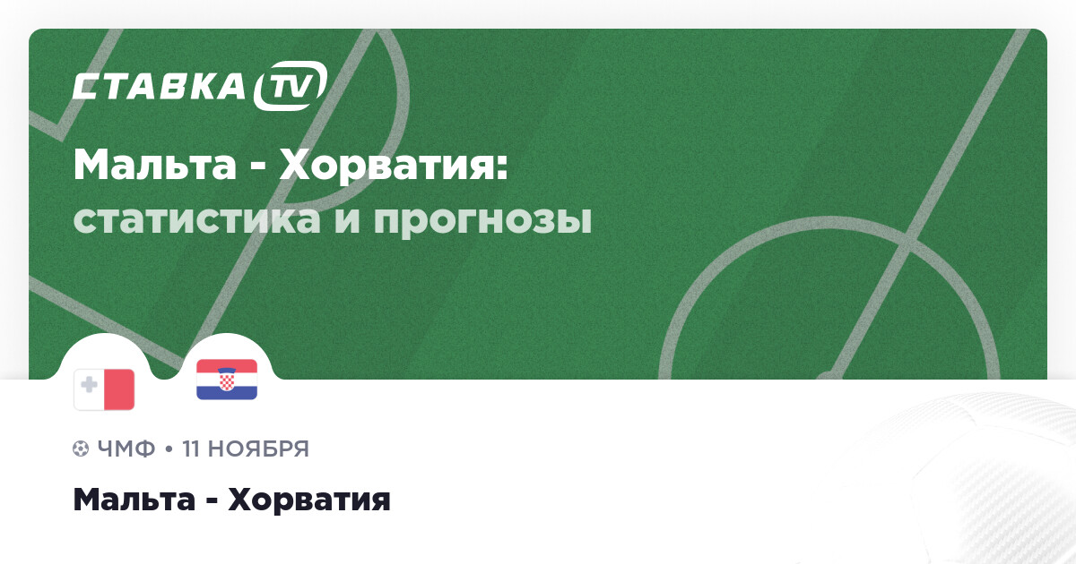 Прогноз и ставки от БК Pinnacle 11112021 читать блог на SOCCERRU. Прогноз на матч команд Мальта - Хорватия 11 ноября 2021 года в рамках турнира Отбор ЧМ-2022. хотя бы одна из команд не забьет и ТБ 15 Коэф.