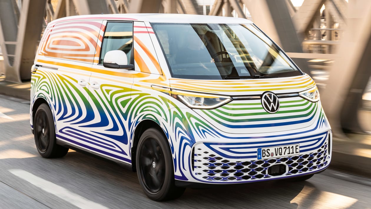 BUZZ is a Volkswagen van of the next generation. Buzz konceptbilen vist frem for aller første gang som camouflagebil. Buzz in Hanover Germany and plans to have the electric van on sale in North America for the 2024 model year.